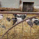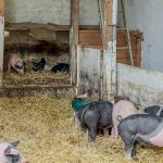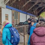 Nach einem kurzen Blick in die Käserei und Erklärung wie Käse entsteht, ging es zu den Schweinen. Schnell verschwanden Nasen in Rollkragen, Schal oder Jackenkragen. „Boah, was stinken die, dabei sehen sie ganz sauber aus“. Rosa-schwarz-gefleckte Teenagerferkel ärgerten ihre gleichaltrigen Artgenossen, knufften, schubsten und jagten sich und die, die ihre Ruhe haben wollten, grunzten genervt- ganz wie im Schulalltag der Teenager auf der anderen Seite des Zauns. Bei den Gewichtsschätzungen von drei Wochen alten Ferkeln und 200kg schweren Muttersauen lagen viele ganz richtig. Leider waren die übrigen Schweine, die nicht gerade Ferkel hatten und draußen im Wald leben, zum Beobachten zu weit weg vom Hof.