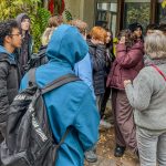 Neugierig mischten sich Schafe in Erwartung auf Futter und Streicheleinheiten unter die Schüler und Schülerinnen. Die ursprünglich aus England stammenden Shropshire flößten dann doch so manchem „coolen“ Schüler Respekt ein. Als alles Futter verteilt war, ging es außen an der Metzgerei vorbei zurück zum Hof. Uns wurde erklärt, dass die Rinder von den umliegenden Höfen angeliefert werden, sie aber vor dem Schlachten mindestens noch eine Nacht mit ordentlich Stroh, Futter und Wasser verwöhnt werden. Das gebiete nicht nur der Respekt vor dem Leben der Tiere, sondern das merke man auch dem Fleisch und der Wurst geschmacklich an. Die Rinder, die an diesem Freitag angeliefert wurden, hatten Glück, sie durften noch das ganze Wochenende ihr Leben genießen.