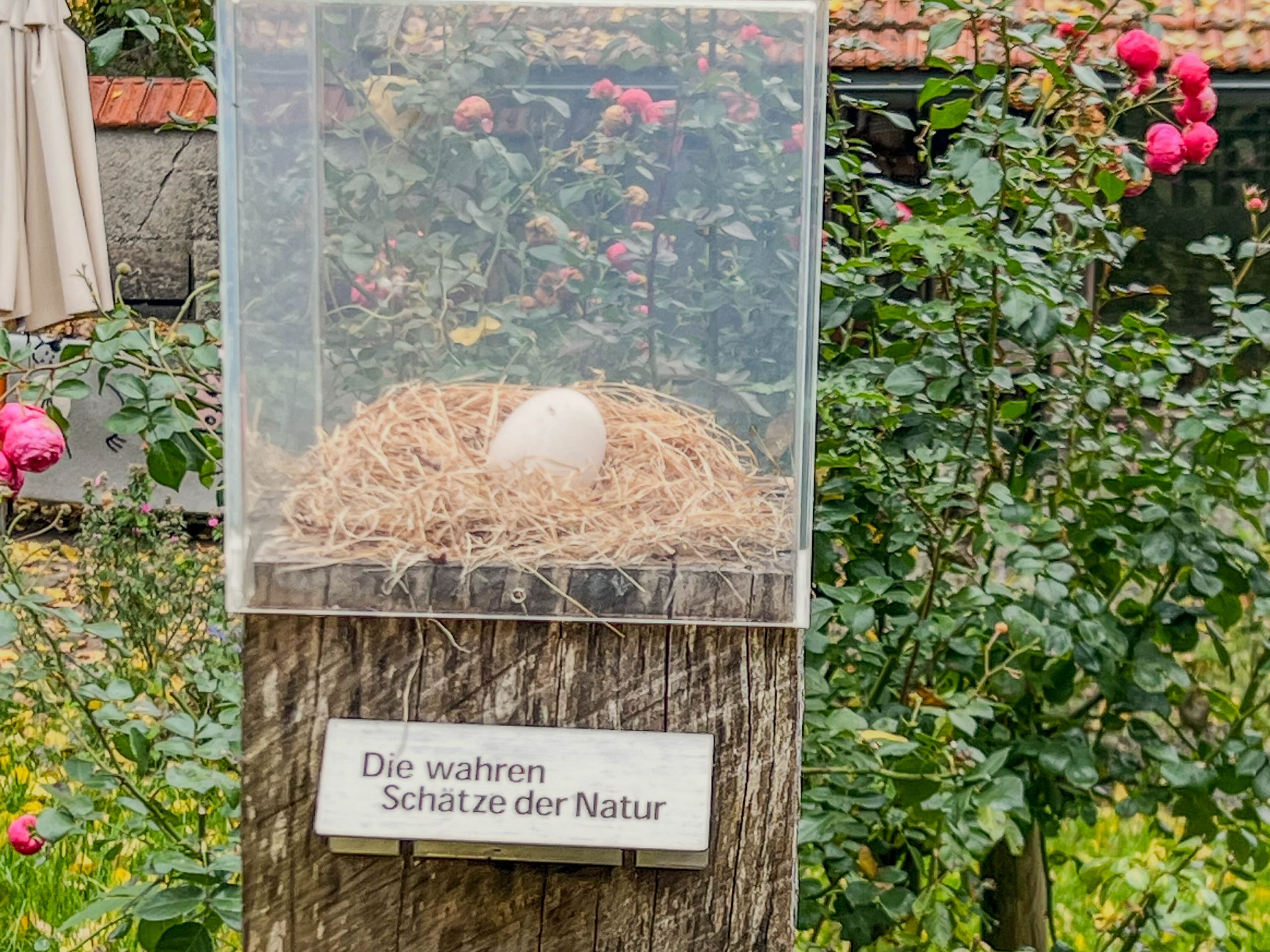 Auf dem großen Freigelände mit Schaukeln, Tischen und Bänken steht ein Küken-Pavillon. Hinter zwei Scheiben liefen, wie der Name sagt, „Küken“. Die Begriffe machten Schwierigkeiten: Küken, das sind doch immer Hühner (küken)?  Auch wenn diese hier einen Entenschnabel haben? Vielleicht werden das ja noch Hühner? Es gibt also auch Entenküken. Hahn, Henne, Küken? Und Huhn? Ja, auch der Hahn ist ein Huhn, ein männliches. Gar nicht so einfach, nicht nur für die Schüler, deren Muttersprache nicht deutsch ist.