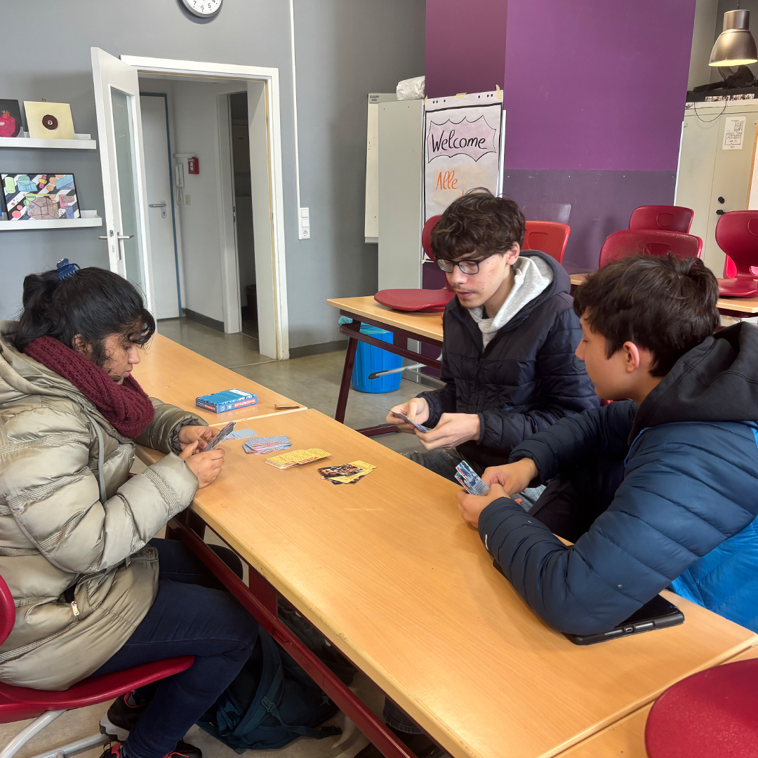In kleinen Gruppen übernahmen die Schüler der 11. Klasse spezifische KI-Kompetenzrollen. Zu jeder Rolle gehörten Stärken, Verantwortlichkeiten und eine klare Perspektive auf KI-Anwendungen. Auf dieser Basis bearbeiteten die Teams abwechslungsreiche Aufgaben aus Schule, Alltag und Gesellschaft: Wo kann KI konkret unterstützen – etwa bei Recherche, Strukturierung, Übersetzung oder Mustererkennung? Welche Aufgaben löst man besser ohne KI – zum Beispiel, wenn Urteilsvermögen, Empathie oder kreative Originalität im Vordergrund stehen? Und welche Risiken, Grenzen und Verantwortlichkeiten müssen beachtet werden, wenn es um Datenschutz, Verzerrungen oder Transparenz geht? Das Kartenspiel des Alexander von Humboldt Instituts für Internet und Gesellschaft bot dafür den idealen Rahmen: Es lädt zum Diskutieren, Entscheiden und Reflektieren über den sinnvollen Einsatz von KI ein.