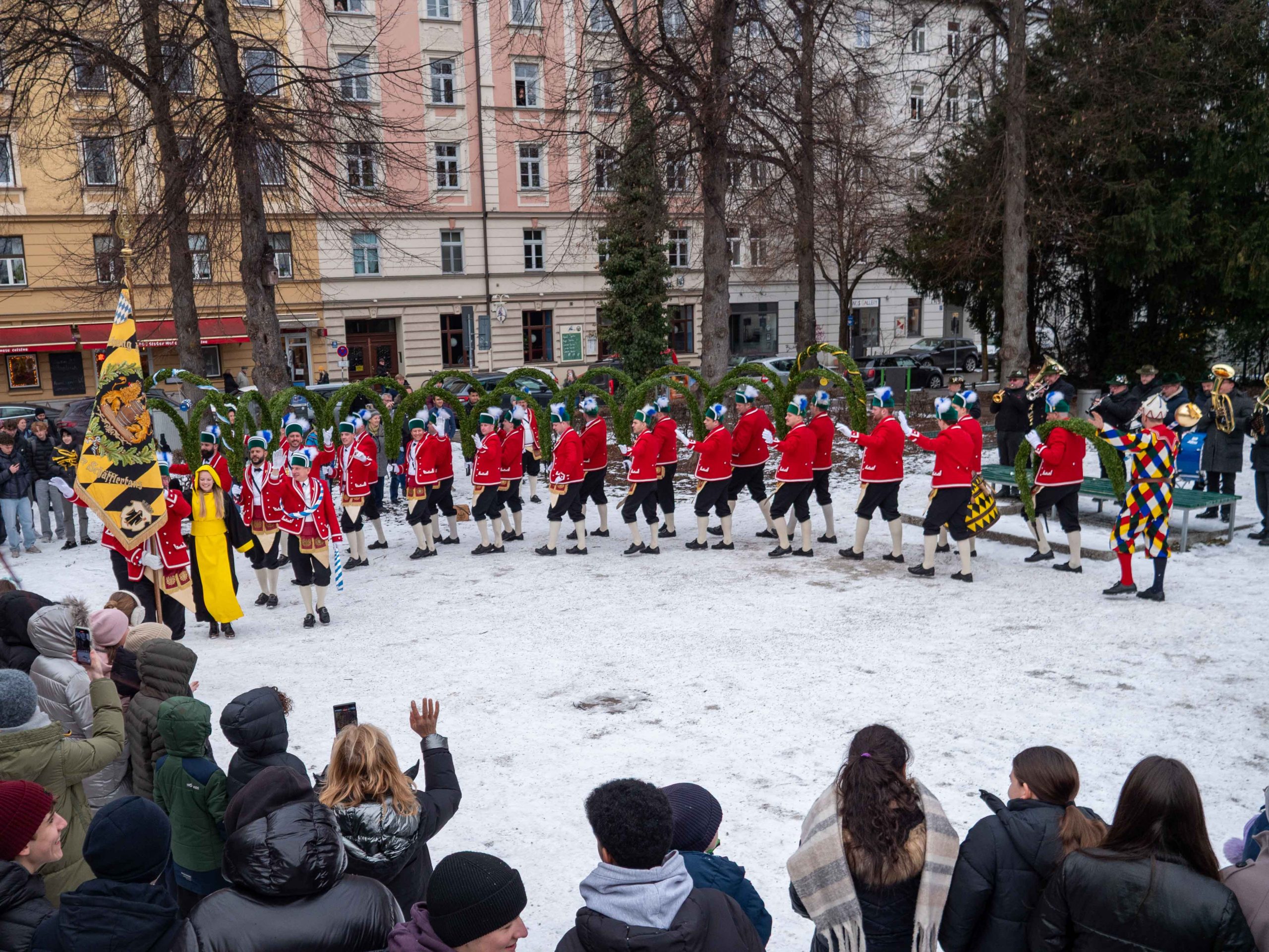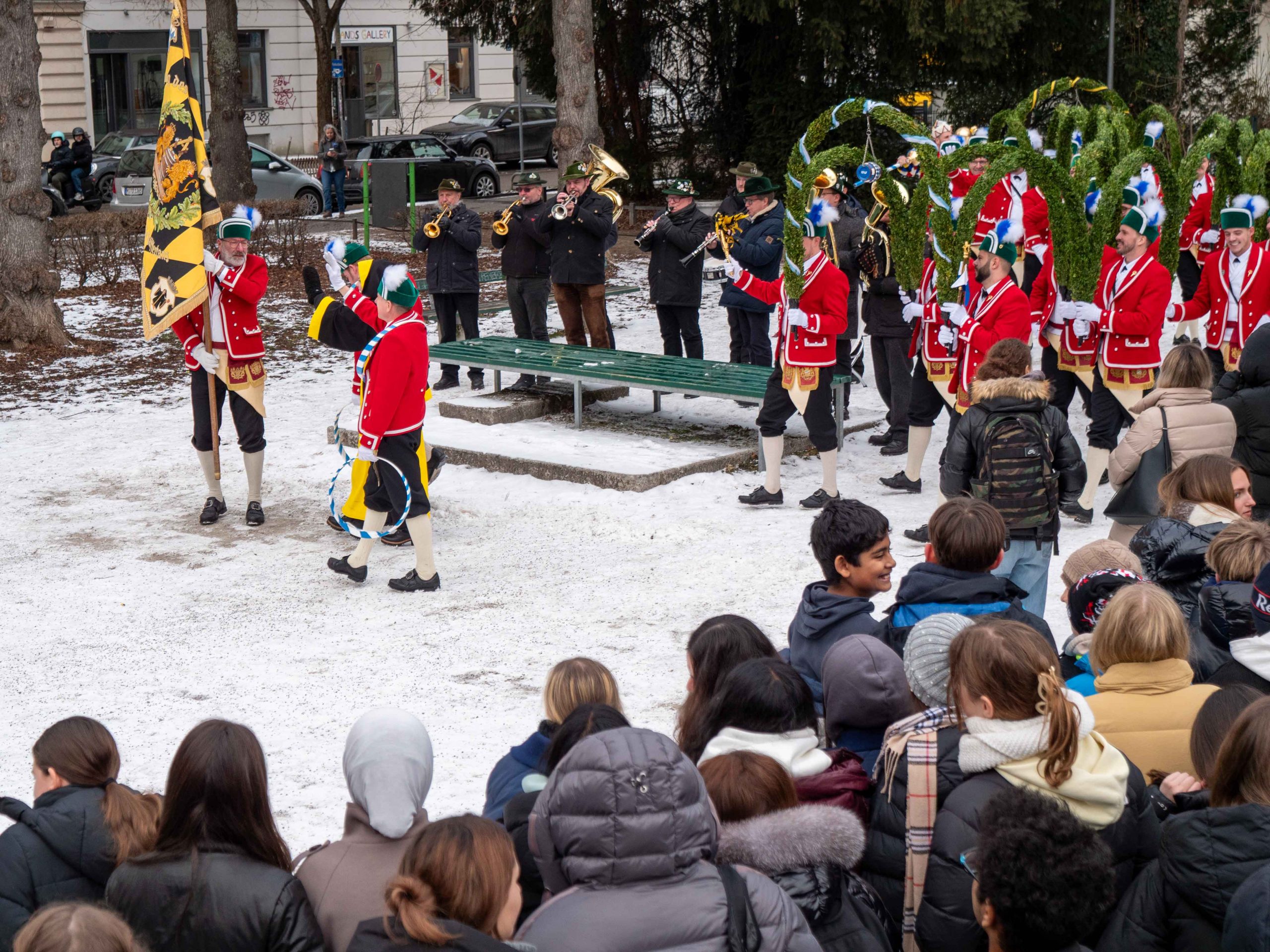 Kürzlich ereignete sich auf der Postwiese ein ganz besonderes Ereignis: Der Tanz der Schäffler. Diese Tradition, die tief in der Münchner Kultur verwurzelt ist, war für viel Schüler ein unbekanntes und besonderes Erlebnis. Bei kaltem Wetter und schneebedeckten Straßen versammelten sich dazu viel Bewohner Haidhausens, um das Schauspiel zu erleben und die Gemeinschaft zu genießen.