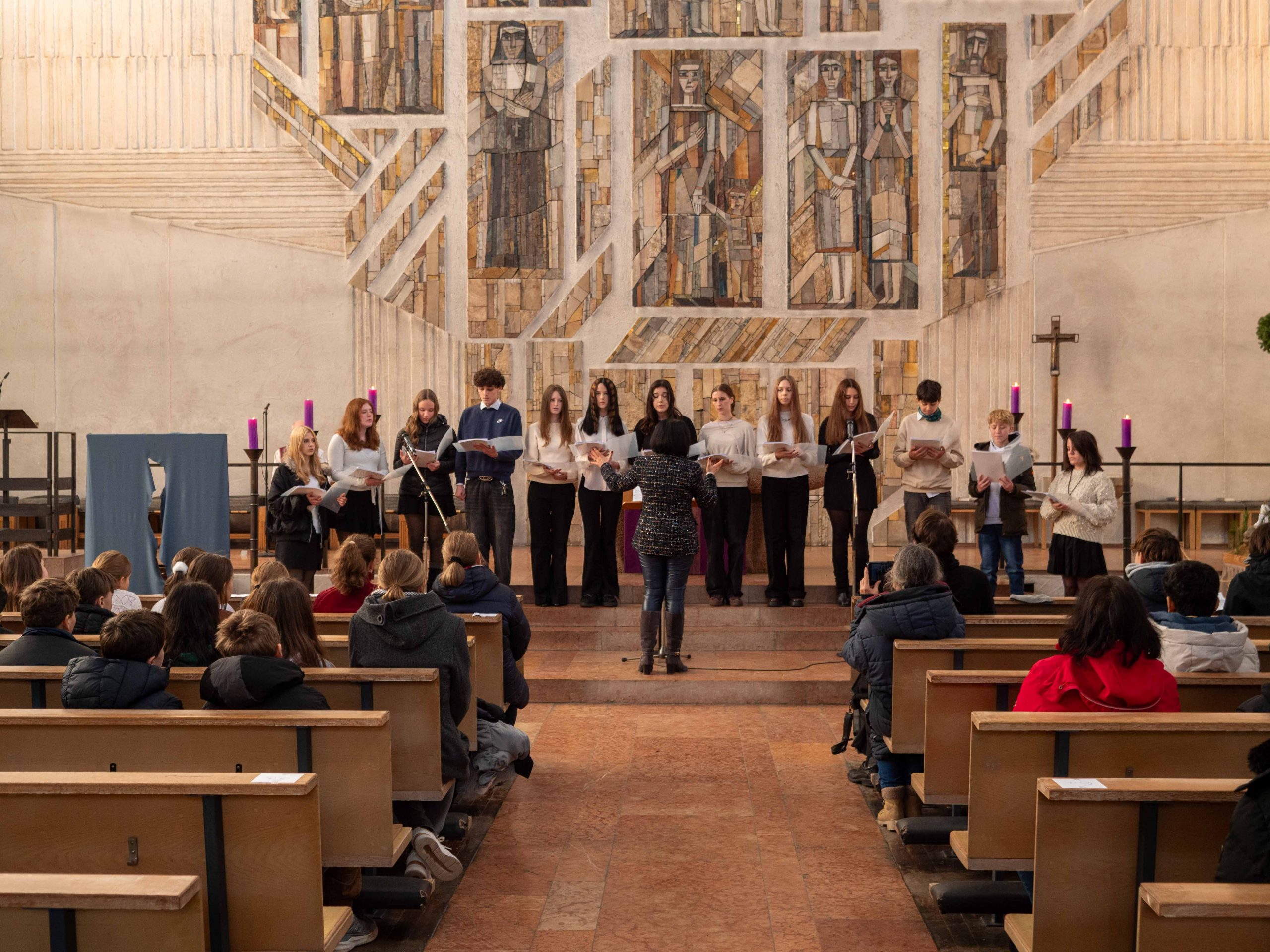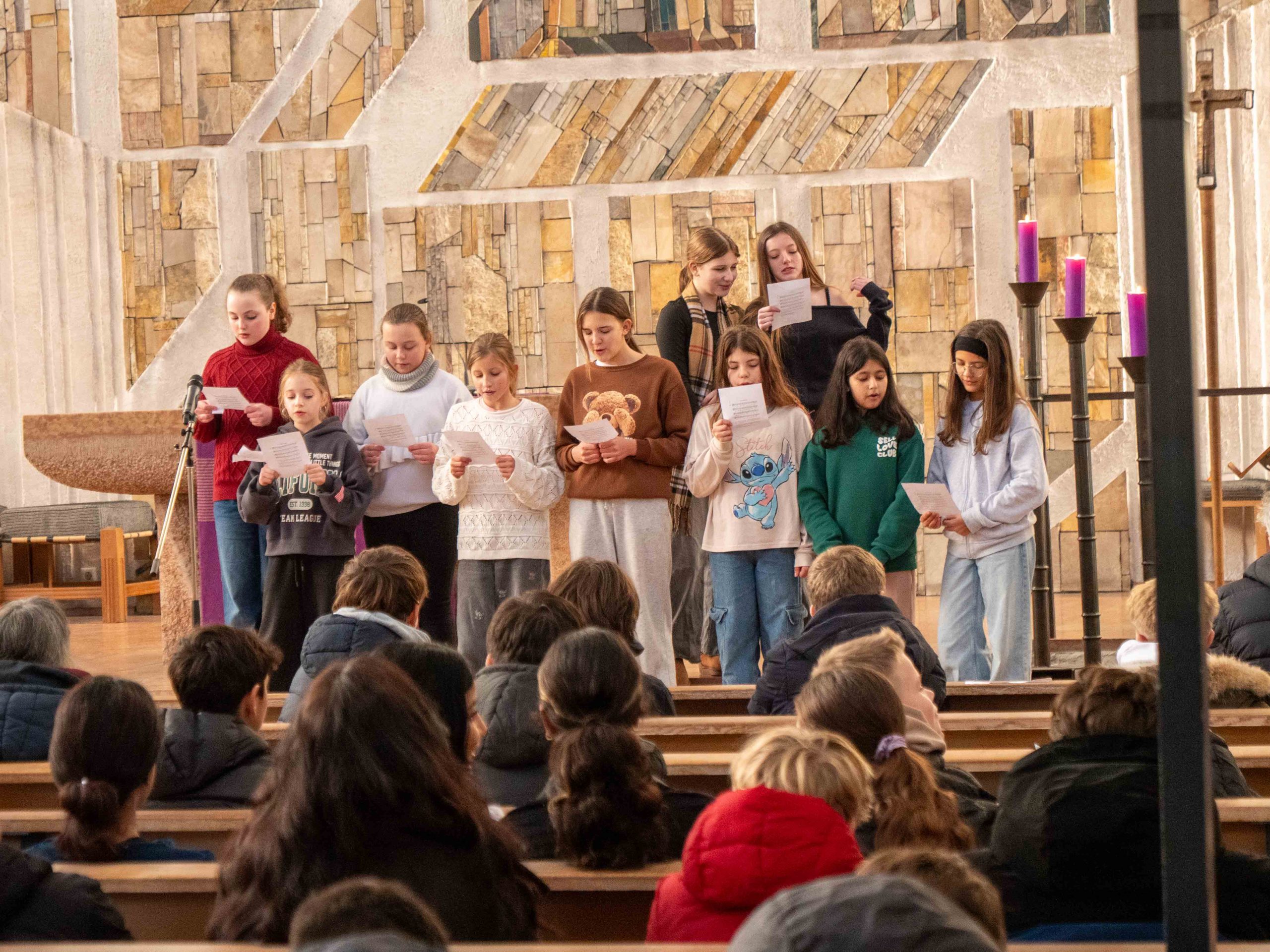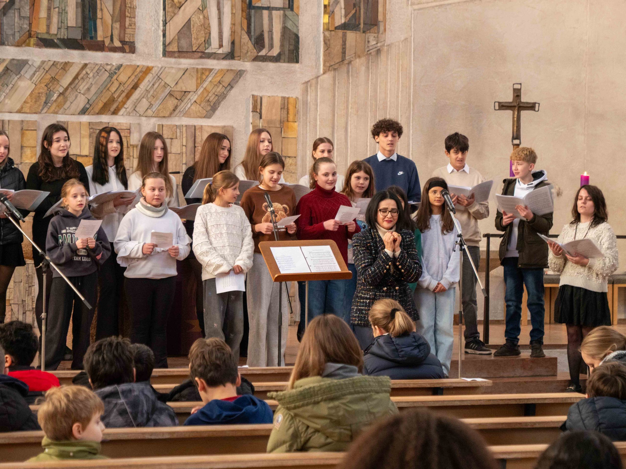 Weihnachten ist an unserer Schule keine laute Bühne, sondern eine Einladung: innezuhalten, einander anzusehen und bewusst Mensch zu sein – egal, ob man glaubt oder nicht. In unserem weihnachtlichen Schulgottesdienst hat der Pater von St. Wolfgang einen Gedanken mitgegeben, der nachklingt: „Ich wünsche mir, mehr Mensch zu werden.“ Zwischen leisen Fürbitten der Kinder und großen Chorklängen wurde spürbar, was uns als kleine Schulfamilie ausmacht: echte Begegnungen und individuelle Stimmen.